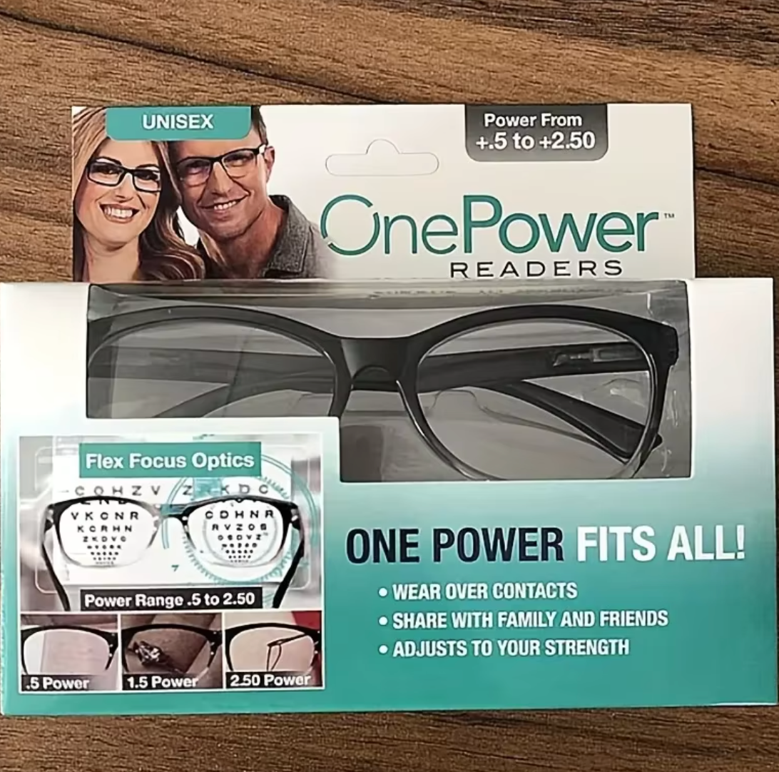 Descubre los LENTES ONE POWER AJUSTABLES™, diseñados para adaptarse automáticamente a tus necesidades de lectura. Con un rango de potencia de +0.5 a +2.75 dioptrías, nunca más tendrás que esforzarte por ver con claridad.
